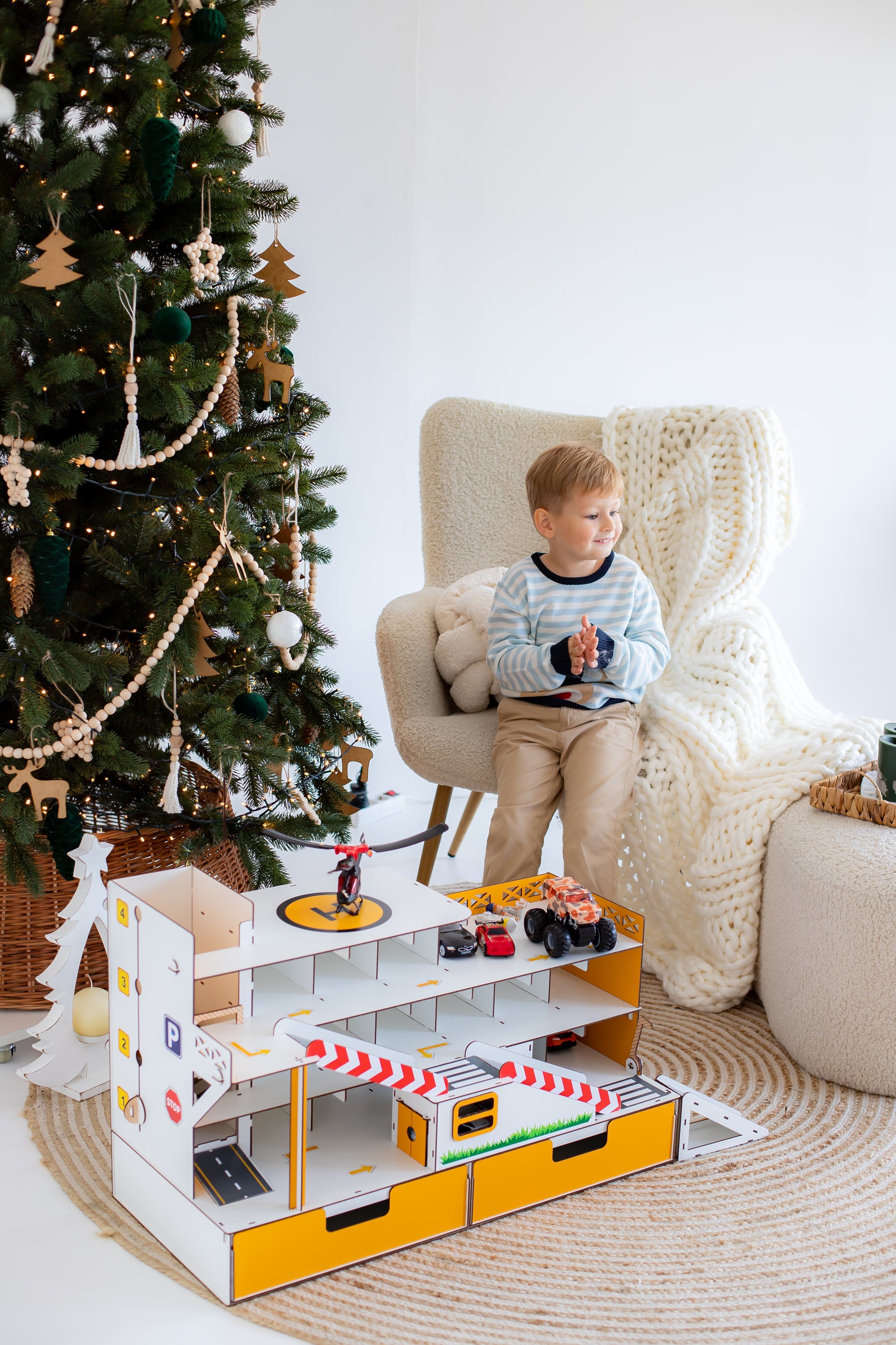 The lift adds an extra touch of excitement and makes playtime even more interactive. This Toy Car Garage is not just a storage solution, it's also a fantastic Christmas gift for a boy who loves cars. Watch as their eyes light up with joy as they open this thoughtful present. Give the gift of fun and organization this holiday season with our Toy Car Garage with Lift!