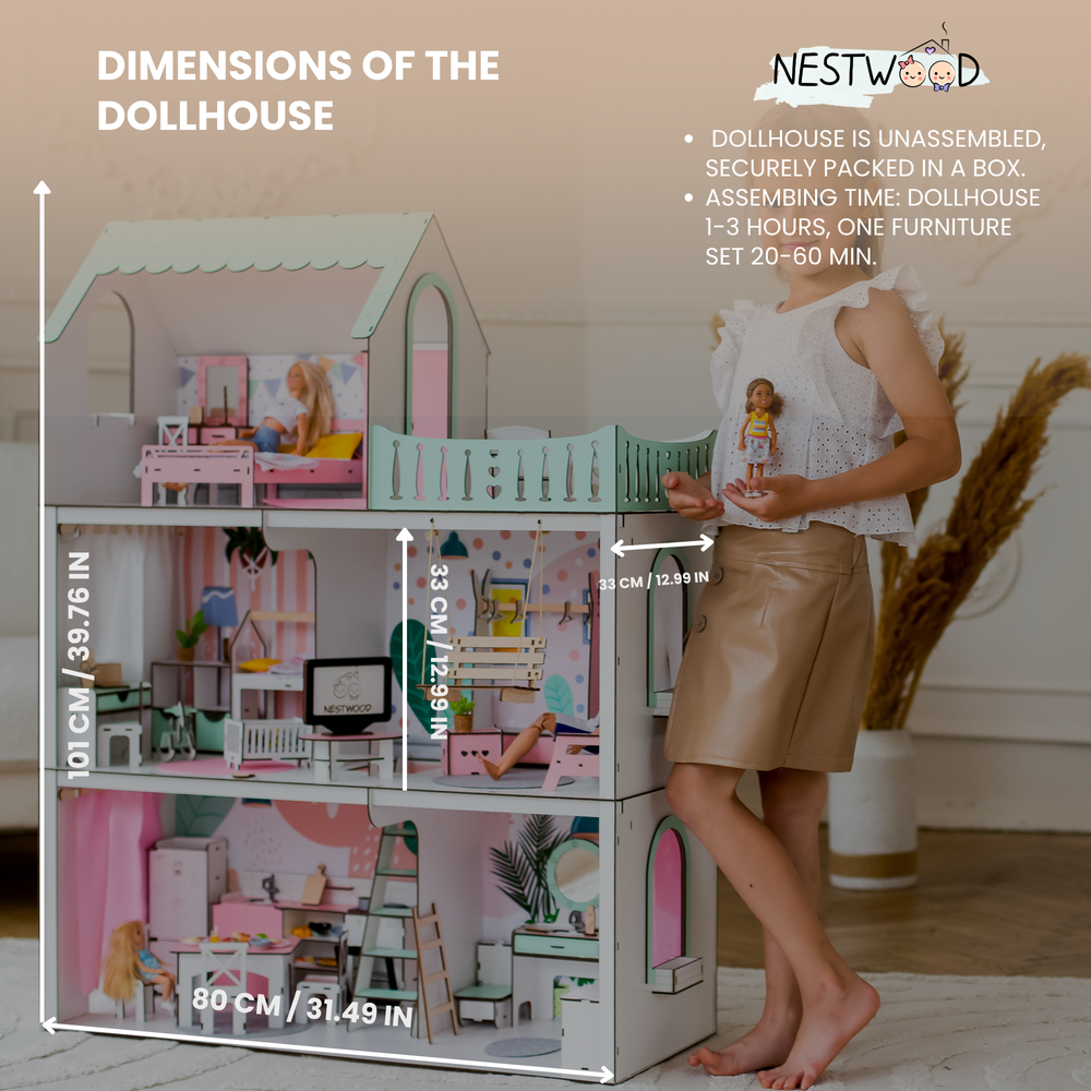 Puppenhaus aus Holz, Herrenhaus, Maßstab 1:6, NestWood Eco