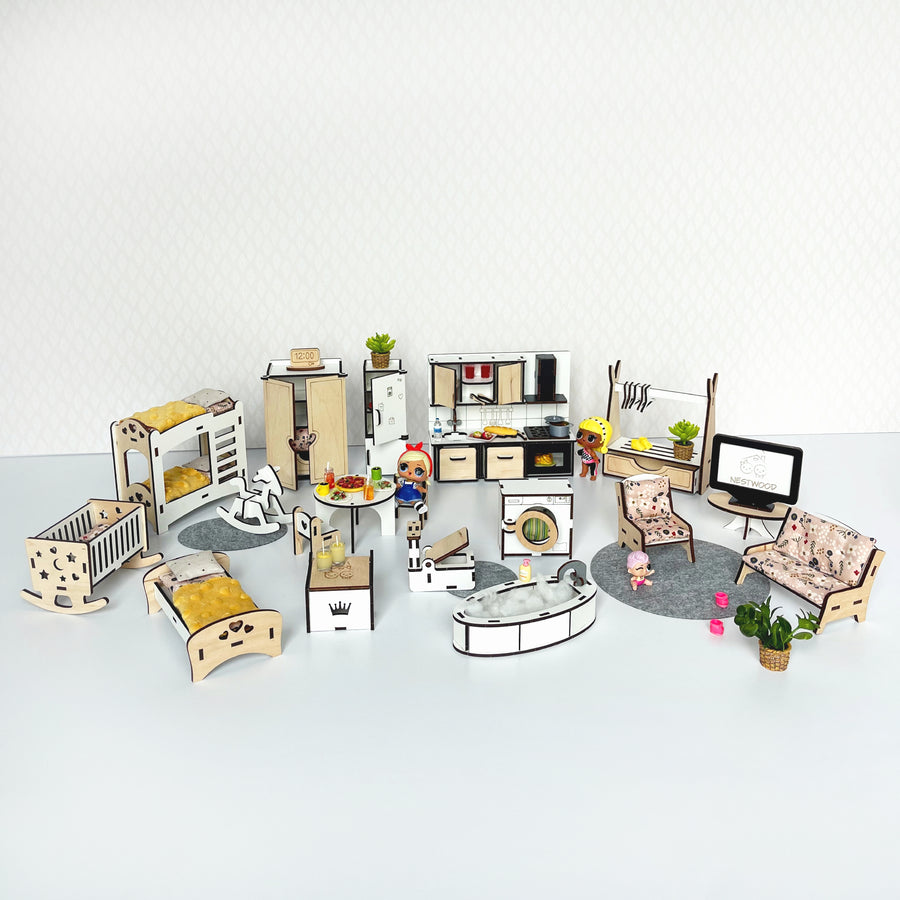 Holzmöbelset Medium im Maßstab 1:12 NestWood Eco