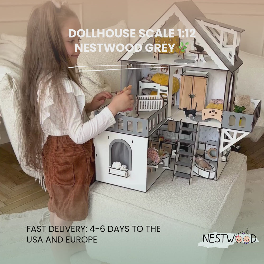 Das Mini Cottage Puppenhaus von NestWood ist ein wunderschön gearbeitetes dreistöckiges Puppenhaus aus Holz , das die Fantasie zum Leben erweckt. Dieses umweltfreundliche Puppenhaus ist perfekt für Barbie, LOL und andere Puppen bis zu 15 cm (5,9 Zoll) und verfügt über versteckte Treppen, ein Designer-Tapetenset und eine bezaubernde Schaukel , was es zu einem Traumspielset für jedes Kind macht.